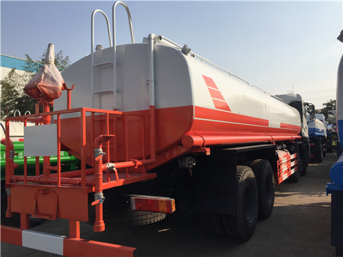 灑水車噴水出口: 前沖,后灑,后工作臺高炮,前沖(噴)后灑、帶側噴(花灑)、帶后工作平臺、平臺上安裝綠化灑水高炮(炮有大雨、中雨、毛毛雨、霧狀可調節),帶吸水管,帶消防接頭