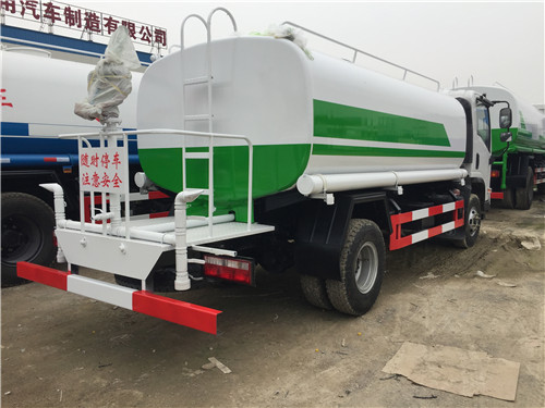 上裝配置:罐體有效容積約為10立方灑水車,上海雄真3.0消防泵,罐體鋼板為4MM碳鋼,罐體及整車外形尺寸按照公告。灌頂加裝消防水炮,整車前沖、后灑、側噴、帶65消防接口,后平臺帶泡不帶門,前封頭帶水位計,后平臺主管路帶1寸澆花接口,后爬梯。平臺后部帶小安全告知牌:“隨時停車,注意安全”,帶兩根水管及陰陽端。罐體顏色:上消防紅,罐體兩側噴“綠化噴灑車”,貼反光標示。
