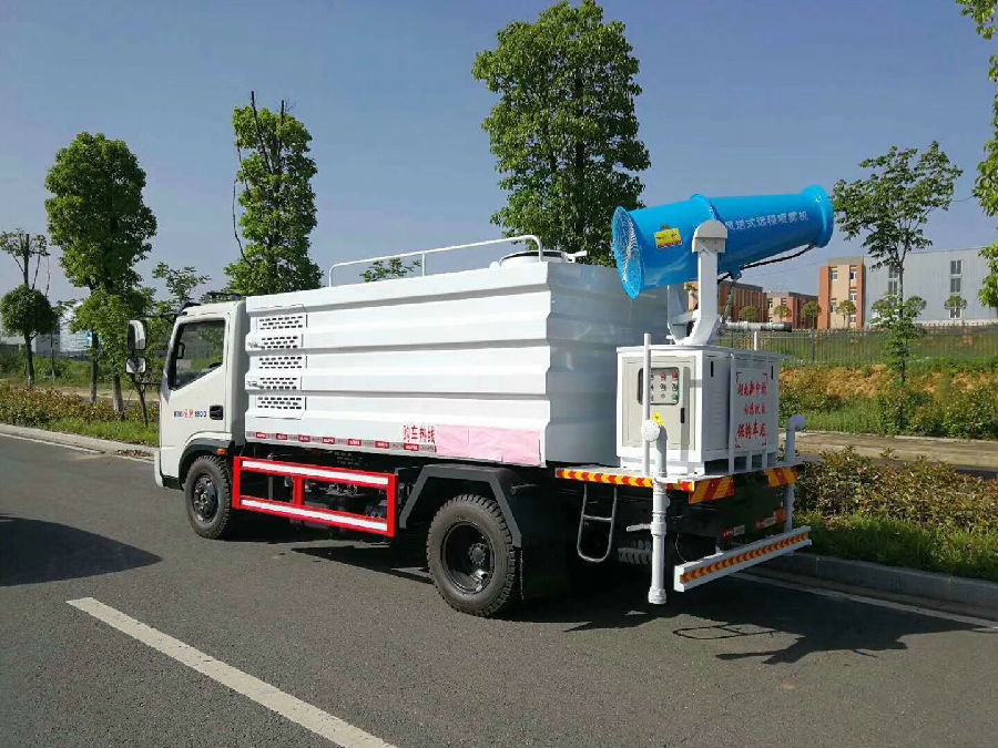 這款霧炮灑水車配備了4缸柴油發電機組,噴灑效果可達40米。也屬于一款多功能灑水車,在東風多利卡五噸灑水車的基礎上添加了霧炮噴灑功能,主要目的是降塵,和地面噴灑清洗。一車多用,既節省了購車成本,也達到了使用要求。