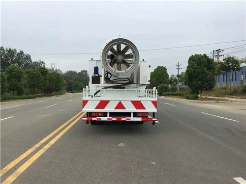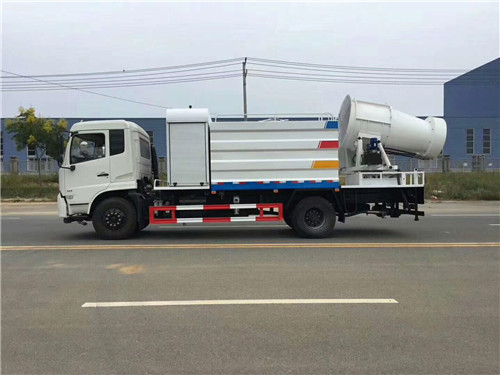 我廠生產的抑塵車根據(jù)罐體容積不同,采用4-6mm厚武鋼Q235碳鋼板制作,罐體內置防浪板,避免車輛急剎時液體前涌造成的安全隱患,罐體頂部開有人孔。人孔既可以作為工作人員進行罐內檢修的進出口,也可以作為加水孔用于向罐內加注水;隨車配備大功率專用灑水泵(標配隨州億豐灑水車,選配杭州威龍灑水泵),比同類灑水泵壓力大、吸程遠、使用壽命長,克服其他灑水泵易被雜物纏住、壓力小、吸水慢的缺點。整車帶前沖(噴)、后灑、側噴、罐體后部帶工作臺,平臺上安裝綠化高壓灑水炮。灑水炮可全方位旋轉,可連續(xù)調成直沖狀、開花狀、大雨、小雨、毛毛雨、半霧狀水流,以適合不同狀況下的需求。