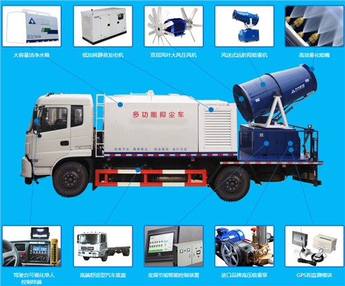 一臺“霧炮”抑塵車可噴灑100多米。“霧炮”又叫環保除塵風送式噴霧機,安裝在車的后半部分。“霧炮”的原理是在液泵噴水后,利用風機將水噴灑出去,能噴灑120米遠、90米高。向天空噴灑水霧,達到抑制揚塵、綠化除塵等效果。
