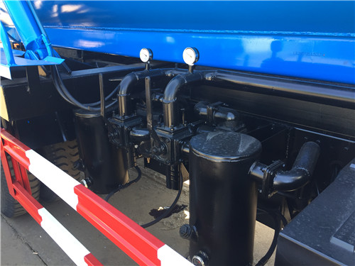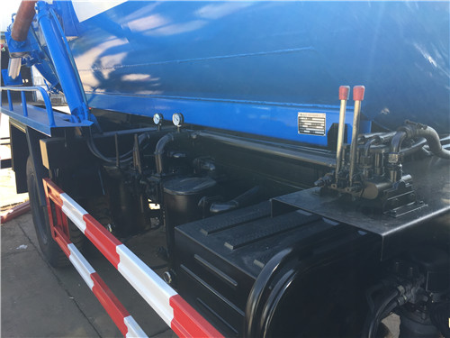 四通閥分別與容罐、真空泵、回油箱大氣相通。四通閥內設有隔板。改變真空泵的吸氣方向,當四通閥將容罐與真空泵相連時,吸污車即可進行排卸作業。