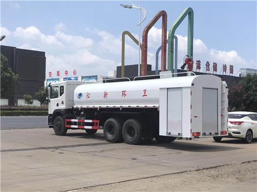 1、前沖洗:安裝可360度調(diào)整的直流噴嘴兩支,沖洗寬度達(dá)到25米以上,除沖洗路面外,當(dāng)噴頭調(diào)整至45度左右時,可對路面兩旁的高大樹木進(jìn)行沖洗。