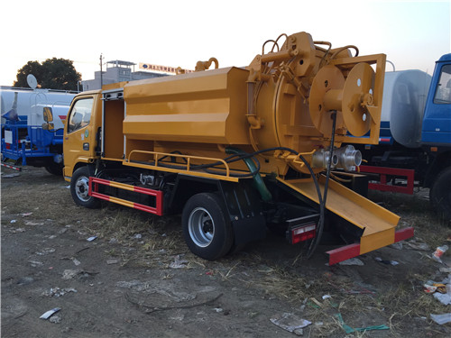 東風多利卡5方國五清洗吸污車專用部分由取力器、傳動軸、真空吸污泵、壓力罐體、液壓部分,管網系統、真空壓力表、視糞窗、洗手裝置等組成,隨車配置大功率真空吸污泵和優質液壓系統,罐體封頭一次壓鑄成型、罐體可后開、雙頂自卸。罐內污物可通過后蓋直接傾倒,具有真空度高(比吸糞車的吸力更大)、噸位大、效率高、用途更廣泛的特點。