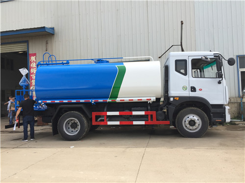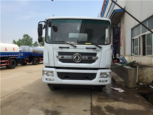 4、東風福瑞卡5噸灑水車的維護與安全:灑水車底盤和發動機部分的使用和保養,按載重灑水車使用說明書執行。水泵的使用和保養,嚴格按其使用維護說明書執行。水源不能有過多雜質,過濾器網應該經常拆洗。冬季來臨前,灑水車應將水泵和水管內的水放空,以防凍裂。灑水車吸水時進水管系統必須保持一定的真空度,才能將水吸入箱內,故進水管系統務必密封可靠.每次工作完畢后,均應將各閥門手柄扳至關閉狀態。各閥門一般不應處于半開狀態,以免影響密封性能。每次工作完畢后,均應及時蓋上進、出口外端的堵蓋。水裝載量不宜超過額定裝載質量。