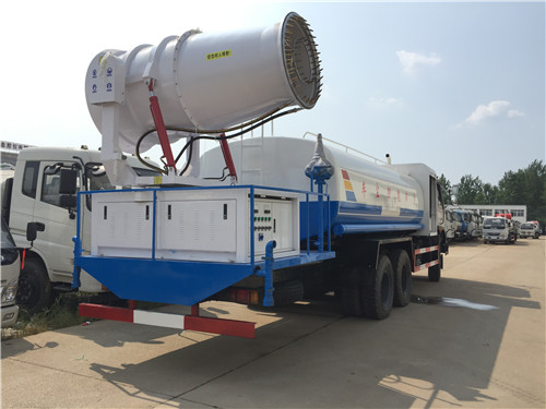 二種是工地使用的抑塵車,這種抑塵車就是灑水車加裝的霧炮,由于工地上的拆遷造成的灰塵是非常大的,要是用第一種抑塵車,會造成灰塵飛的到處都是,那是因為第一種抑塵車噴霧非常細,水量打不到工地拆遷的要求,而灑水車加裝的霧炮,水流量要別第一種大。為了減少拆遷工地揚塵污染降塵,各地政府大量購置抑塵車,也稱霧炮車,專門用于拆遷工地降塵控制,湖北程力專用汽車股份有限公司抑塵車噴霧距離為30到120余米,最大蓄水量近25噸,主要作用是噴霧抑塵,同時具備灑水車和道路沖洗車功能,可以有效抑制揚塵的產生。