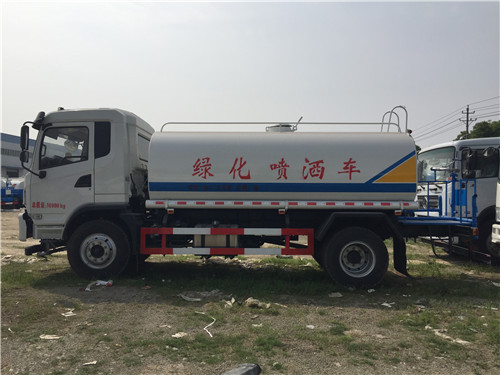 大運灑水車配置有大功率灑水泵,灑水泵帶自吸功能,能垂直吸6米,吸力非常大,還帶有消防接水口,能快速接水,灑水裝置有前沖,后灑,側噴,后工作平臺,平臺上安全綠化灑水水炮,其灑水車寬度14米,水炮射程可達30米,綠化灑水水炮可旋轉360°,還可調節成水柱裝,霧狀,大中小可任意調解,射程非常遠。