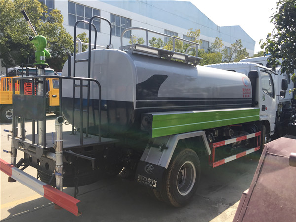 上裝配置:罐體容積:4.5立方(裝水4.5噸),罐體鋼板采用Q235碳鋼鋼材,前沖后灑、側(cè)噴、平臺高炮、自流閥及消防接頭各1個、水管2根、標(biāo)配億豐泵或金龍泵,霧炮機(jī)可選裝20-35米,