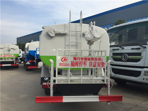 4、客戶購買灑水車時,可以根據(jù)實際需要要求提高后噴灑噴嘴的設(shè)置高度,以擴大后噴頭的灑水寬度,在灑水場合的小范圍內(nèi)還可以直接用單噴頭完成灑水作業(yè),帶來更加優(yōu)秀的壓塵、降溫效果。