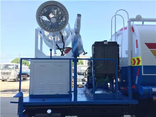 罐體采用4mm厚碳鋼板制作,罐體容積可達12噸-15噸,配備大功率專用灑水泵。前沖(噴)后灑,帶側噴,后置工作平臺,平臺上安裝綠化灑水高壓炮(炮噴射形狀可調成直沖狀、大雨、中雨、毛毛雨、炮可360度旋轉,射程>28米)。帶自流閥,消防接口。帶自吸泵,可抽水或從消防栓上連接注水。