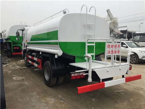 上裝配置:罐體有效容積約為10立方灑水車,上海雄真3.0消防泵,罐體鋼板為4MM碳鋼,罐體及整車外形尺寸按照公告。灌頂加裝消防水炮,整車前沖、后灑、側噴、帶65消防接口,后平臺帶泡不帶門,前封頭帶水位計,后平臺主管路帶1寸澆花接口,后爬梯。平臺后部帶小安全告知牌:“隨時停車,注意安全”,帶兩根水管及陰陽端。罐體顏色:上消防紅,罐體兩側噴“綠化噴灑車”,貼反光標示。