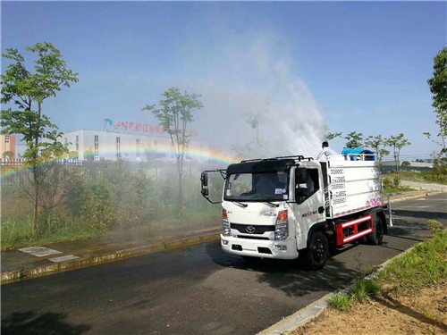 霧炮車又稱為:抑塵車、噴藥車。霧炮車噴射的水霧顆粒達到微米級,能有效分解空氣中的污染顆粒物、塵埃等,在霧霾天氣下用于降塵除霧,可以有效的緩解霧霾,其節水的特性同樣也可以用作灑水車使用。霧炮車還可以降塵、灑水,把樹上的灰塵洗掉。霧炮車噴灑出的水霧與懸浮在空氣中的PM2.5和PM10粉塵顆粒吸附、聚合、沉降,達到消除污染物和減霾的目的。盡管霧炮口徑巨大,但其噴灑耗水量僅為傳統灑水車的兩到三成,覆蓋面積和除塵效率卻高出20倍。既提高效率,也避免路面積水影響交通。