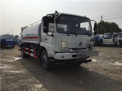 多功能東風天錦抑塵車罐體容積有11.85立方米,可經過了、特殊的防腐蝕防銹處理,運輸丙酮水溶液(一種無色透明液體,有特殊的辛辣氣味),其主要是用來給樹木綠化帶進行農藥噴灑的。