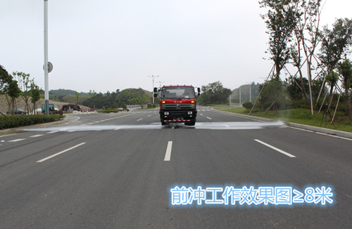消防灑水車前噴頭位置較低,靠近地面,噴灑壓力較大,可用于沖洗路面;后噴頭位置較高(消防灑水車后噴頭一般左右各安裝一個),灑水面較寬,可用于公路施工灑水,使用后噴頭時,應將前噴管關閉;使用可調噴頭灑水時,灑水寬度可根據需要調整。灑水寬度越寬,中間重疊量越少,灑水密度越均勻。