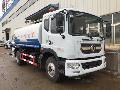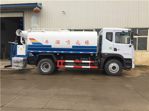 國六東風多利卡D9灑水車整車型號:CLW5162GSS4型灑水車,底盤型號:DFA1160LJ10D4,整車外形尺寸:8100,7450×2480×3000 ,罐體尺寸:5000/2100/1350mm、4350/2300/1400mm、這款國六東風多利卡D9灑水車罐體容積:12方,11.9方,不同軸距,立方數不一樣,罐體采用國標碳鋼鋼材制作,帶前噴后灑,側噴,尾部帶平臺及高炮,可以自吸自排,國六東風多利卡D9灑水車外形圖片展示如下: