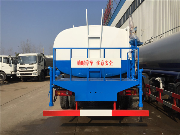 東風153灑水車補充說明:此款東風15噸罐體容積大、實用性強、性價比高適合高速公路、大型工礦、城市路面、大面積綠化作業(yè)等,可加裝氣動球閥,使前沖、后灑、側(cè)噴在駕駛室內(nèi)可獨立控制;可配置消防大功率消防水泵、應急時可做消防灑水車使用。