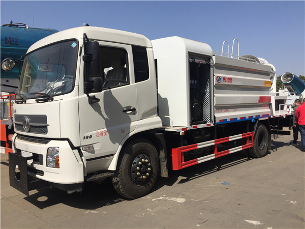本車具有獨立的高、低壓兩套水路系統,為抑塵車工作提供壓力水源。其工作原理是:利用高壓水泵產生的高壓水,經噴水架的高壓噴嘴噴出,利用高壓水流的動能,以高壓力、低流量的方式抑塵,超遠射程,高效節水,能將路面的陳舊污漬抑塵干凈;或高壓水經左(右)角噴噴出,清洗路緣、人行道及護欄隔離區;使用高壓噴槍還可抑塵路標、廣告牌、高架路等;噴霧系統具有強大的噴霧降塵、噴撒空氣消毒劑及調節空氣濕度功能。