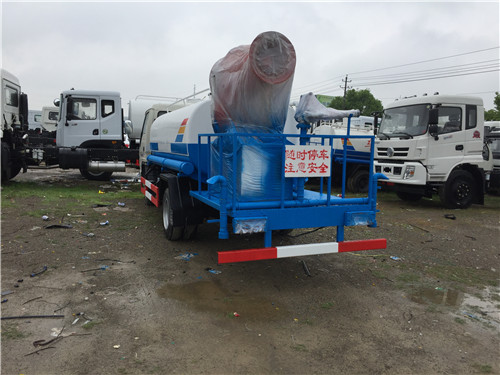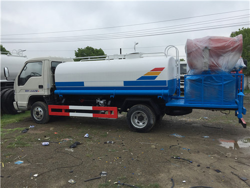 福田5噸不上牌抑塵車改裝配置:罐體用4MM碳鋼板制作,罐內隔板具有防波作用,以減低抑塵車行駛時罐體液體的沖擊。整車帶一個專用抑塵泵(垂直最大吸程6米),灑水寬度14米,射程28米。抑塵車配備2個前沖(噴)(能將路面泥巴、塵土、垃圾沖干凈);2個后灑(能均勻地將水灑在路面,一次灑水寬度14米)、2個側噴(花灑)(能均勻地將路旁綠化帶澆灌)、帶1個后工作平臺,平臺上安裝1個綠化灑水高炮(灑水炮可全方位旋轉,可連續調成直沖狀、大雨、小雨、毛毛雨,霧狀可調節沖洗高大樹木),引水時間<5min,流量90m3/h。帶1個消防接頭,帶1個自流閥,1個過濾裝置、人性化爬梯及側防護欄,安裝灑水音樂喇叭。