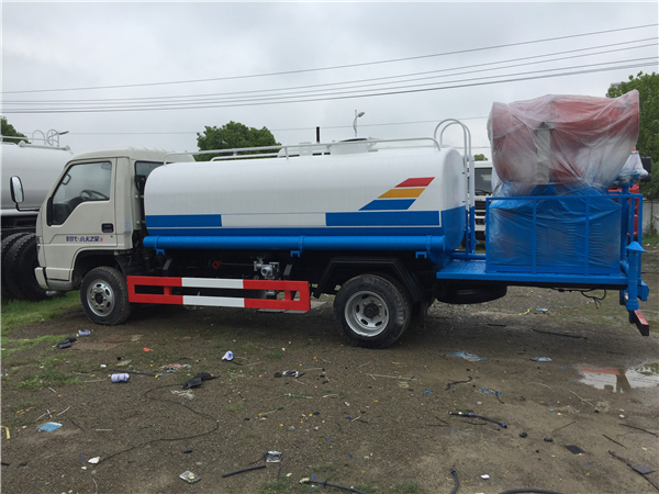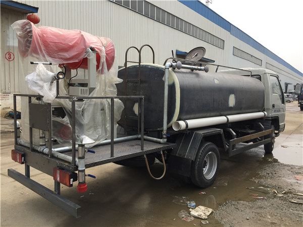 福田時代5噸抑塵車:福田時代底盤,軸距3360mm,安徽全柴490EGR發動機,7.00-16尼龍胎,帶暖風,氣剎(或油剎),不上牌抑塵車價格最低?!怪蔽?gt;7米,灑水寬度>14米,射程>28米。前沖(噴)):(能將路面泥巴、塵土、垃圾沖干凈);后灑(能均勻地將水灑在路面,灑水寬度>14米)、前側噴(花灑)(均勻地將路旁綠化帶澆灌)、后工作平臺,平臺上裝綠化灑水炮(炮有大雨、中雨、毛毛雨、霧狀可調節沖洗高大樹木),灑水泵,消防接頭,自流閥,過濾裝置、人性化爬梯及側防護欄,音樂喇叭。