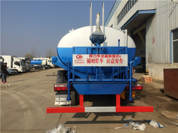 2、后灑:利用裝于車后部的兩個(gè)噴嘴將水噴成均勻的扇表形面,向路面灑水;后灑可達(dá)10米寬。