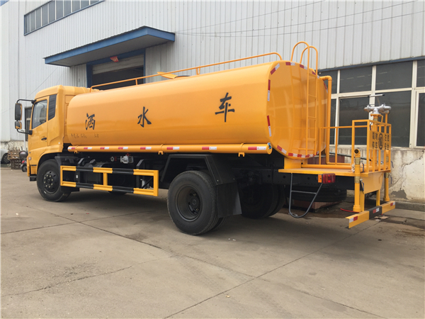 灑水車上裝配置:罐體有效容積12立方,采用5毫米厚武鋼碳板板自動焊接制作,配品牌大功率灑水泵,帶前噴后灑側(cè)噴,尾部平臺帶高位水炮,可自吸自排。前沖14米寬,水炮射程28米,自吸深度7米。