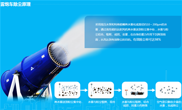 工地抑塵車適用范圍:“工地抑塵車最早用于碼頭、工礦和煤場,那里的污染物顆粒較大,對水霧的要求沒這么精細。通過高壓將水霧化成微米級的水霧顆粒,與粉塵顆粒物大小相當,不僅可以省水,還能與城市中的霧霾碰撞、吸附,凝結成粉塵團并沉降。”