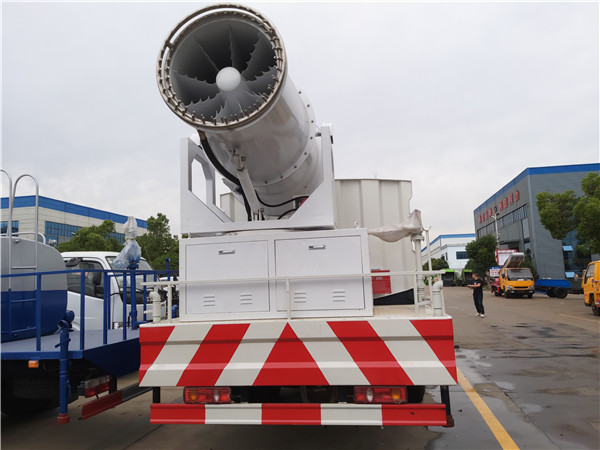 1.工地抑塵車功轉換效率高、射程遠、覆蓋面積大、霧粒細小且均勻、抑塵效果好。水霧與飄在空中的塵埃接觸時,被塵埃所吸附,加大塵埃的比重,抑制塵埃在空氣中的流動,并加速塵埃沉降,實現對空氣的凈化。