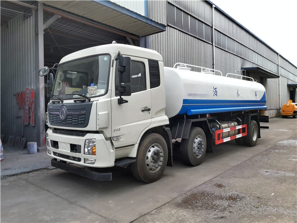 20方東風T5后雙橋灑水車整車型號:DLQ5250GPSQ5,平頭一排半平頂豪華新款T5駕駛室、玉柴240馬力發動機、陜齒8JS105中八檔變速箱、280×80×(7+4)mm大梁、5噸前橋、10噸雙后橋、軸距4350+1300mm、輪胎11.00尼龍輪胎(或10.00鋼絲胎)罐體容積21立方,5mm厚板材,前沖后灑,后工作平臺帶高炮,環保免征齊。