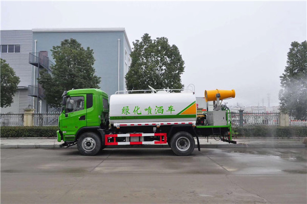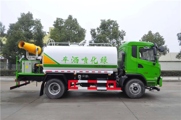 大運抑塵車配置有大功率抑塵泵,抑塵泵帶自吸功能,能垂直吸6米,吸力非常大,還帶有消防接水口,能快速接水,灑水裝置有前沖,后灑,側噴,后工作平臺,平臺上安全綠化抑塵水炮,其灑水車寬度14米,水炮射程可達30米,綠化抑塵水炮可旋轉360°,還可調節成水柱裝,霧狀,大中小可任意調解,射程非常遠。