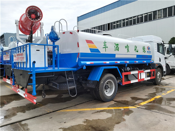 在常規灑水車的基礎上,加裝了抑塵噴霧系統,外接的380V配套動力組把罐體內的水霧最大霧化作業行程高達20-100米,穿透性好,作業效率高,大大降低了勞動力成本??蓪γ憾褔姙⒁謮m劑、固化劑,使得煤灰不會被風吹起,降低空氣粉塵污染。采用了遙控操作指揮系統,可360度旋轉,兼具綠化噴灑,消防應急,除塵降塵,噴藥消毒等功能,遠程遙控,使用方便。