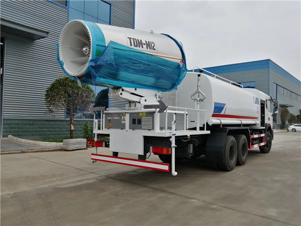 抑塵車(chē)的抑塵效果卻十分驚人,工作效率約為普通灑水車(chē)的30倍。水箱中的水經(jīng)過(guò)霧化后,由高壓風(fēng)機(jī)噴出。相比普通灑水車(chē)噴出的水流,降塵噴霧車(chē)可噴射微米級(jí)水霧,其吸附力也增加了3倍,耗水量卻降低了70%