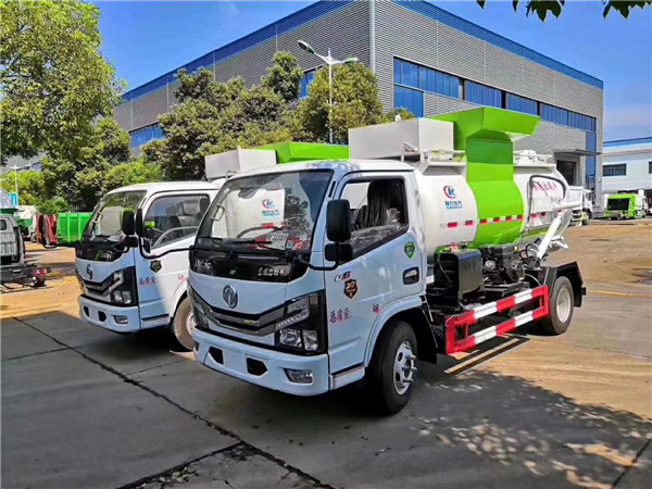 餐廚垃圾車裝載量大,例如5方餐廚垃圾車和5方的掛桶垃圾車,掛桶垃圾車最多只能裝5方左右,而餐廚垃圾車通過壓縮功能,能裝大概裝12方左右的垃圾,優勢顯而易見。