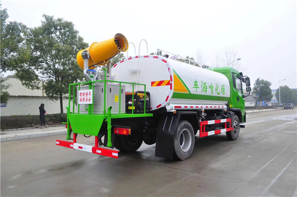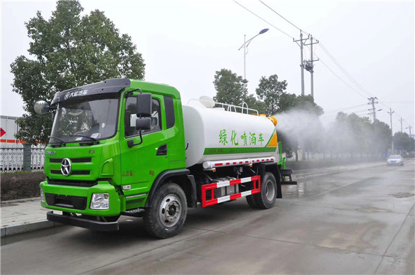 大運致勝15方灑水車前裝有鴨形噴嘴或圓頭沖嘴,大運致勝15方灑水車后面裝有圓柱開灑水噴嘴或蓮蓬頭噴嘴,后部有一工作平臺,裝配有水炮。后部還可裝8個噴嘴(選裝)噴水器一般用于沖洗街道,起除塵和降溫作用,其噴水器可以用調節噴嘴螺紋的方法改變噴水器的噴灑方向和角度,高射水炮可以用于城鄉園林綠化及應急消防。蓮蓬嘴可以澆落路中間噴水器沖起的灰塵,起到清潔空氣的作用。