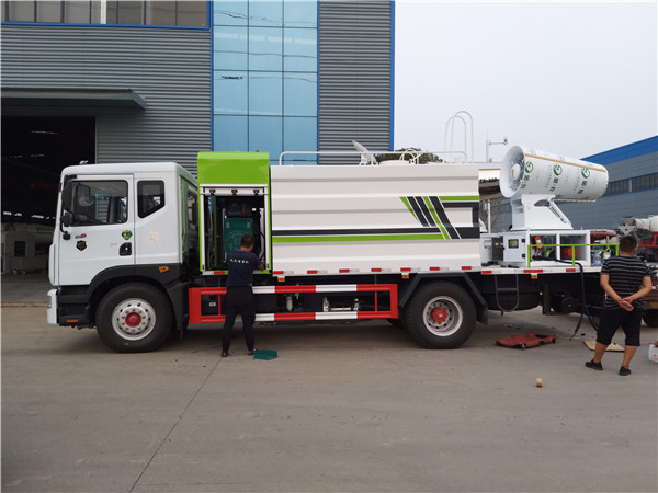 10噸霧炮車底盤的清潔:離地面最近的底盤肯定是被泥沙弄得一塌糊涂。所以在進(jìn)行其他部件清潔之前,我們先要對(duì)10噸霧炮車的底盤進(jìn)行一個(gè)全面的清潔。經(jīng)過泥濘道路后,10噸霧炮車的前后輪轂板上均會(huì)沾滿黃色的泥漿和小的沙石。在清潔時(shí)需用高壓水槍放到輪轂板下方,高壓水槍的噴水方向朝輪轂板方向,這樣才能有效清除附著在輪轂板上的.