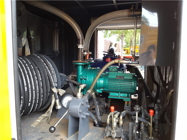 東風多利卡吸污凈化車在吸污作業時,真空泵會抽出吸污罐中的空氣形成真空,這時吸污罐就會承受強大的壓力。如果配的真空泵越大,抽污速度越快,罐體承受的壓力越大。如果配置的真空泵太大,而罐體質量又夠好,就會出現罐體被吸癟的情況。