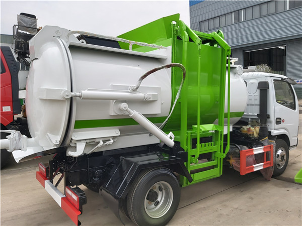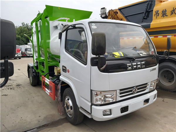 餐廚垃圾車主要的特點就是分為兩個獨立的裝料斗,分為可回收垃圾和不可回收垃圾裝料斗。而目前我國還沒有出現此類分類處理的裝置。一些大型的城市,北京、上海等為了處理垃圾分類,最普遍的做法就是用不同的垃圾車分別裝載可回收垃圾和不可回收垃圾。