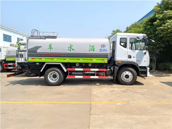 國六東風多利卡D9灑水車整車型號:CLW5162GSS4型灑水車,底盤型號:DFA1160LJ10D4,整車外形尺寸:8100,7450×2480×3000 ,罐體尺寸:5000/2100/1350mm、4350/2300/1400mm、這款國六東風多利卡D9灑水車罐體容積:12方,11.9方,不同軸距,立方數不一樣,罐體采用國標碳鋼鋼材制作,帶前噴后灑,側噴,尾部帶平臺及高炮,可以自吸自排,國六東風多利卡D9灑水車外形圖片展示如下: