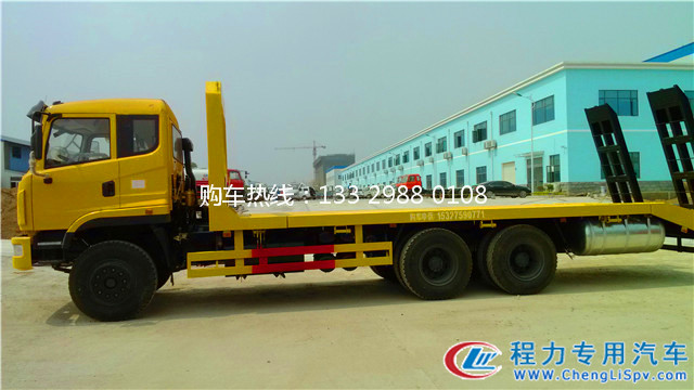 楚風(fēng)后雙橋平板運(yùn)輸車采用玉柴260馬力國(guó)四發(fā)動(dòng)機(jī),法士特9檔變速箱,457后橋,10.00R20鋼絲胎,整車長(zhǎng)10.45米,平板固定寬度2.5米,液壓伸縮到3米。該車有燃油,可輕松上戶辦理營(yíng)運(yùn)證。