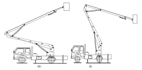 各升降臂及轉臺操作:先撥動相應的電鈕開關在緩緩拉動節流操作桿,升降臂及轉臺即可產生動作。