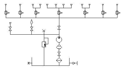 液壓系統(tǒng)由舉升液壓回路和清掃液壓回路兩部分組成。舉升回路控制垃圾箱體的傾翻和后艙門的開閉,由車左側(cè)的手動(dòng)閥組操縱。清掃回路控制左右側(cè)掃刷、寬刷的旋轉(zhuǎn),左右側(cè)掃刷的外伸和回收,寬刷的左右轉(zhuǎn)向,通過(guò)電磁閥在駕駛室內(nèi)操作。兩回路各有一個(gè)壓力測(cè)試點(diǎn),供調(diào)試時(shí)使用。其管路壓力調(diào)定方法如下: