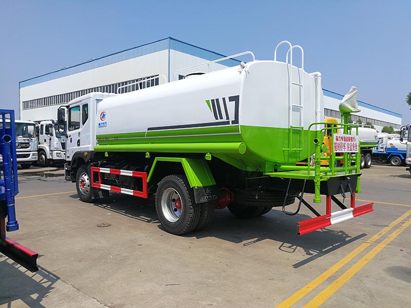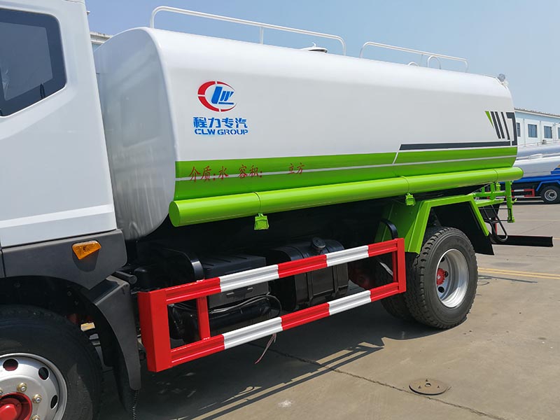 三、選裝配置: 選配駕駛室內電控氣動操作;大鴨嘴前沖噴頭壹對;萬向前沖球閥;路面沖洗水管卷盤;本田高壓水泵,水槍可沖洗人行道、移動洗車等; 藥盤;長警燈,LED箭頭燈;罐側帶閘門,罐后加裝噴霧降塵裝置;灑水車泵標配程力泵選配杭州威龍泵;可對主管道加粗,可選316大口徑球閥;罐體內防腐、保溫、襯塑處理,灑水車作運水車用可加裝自流口。運熱水罐體可做保溫,運生活用水可做食品級304不銹鋼罐體。