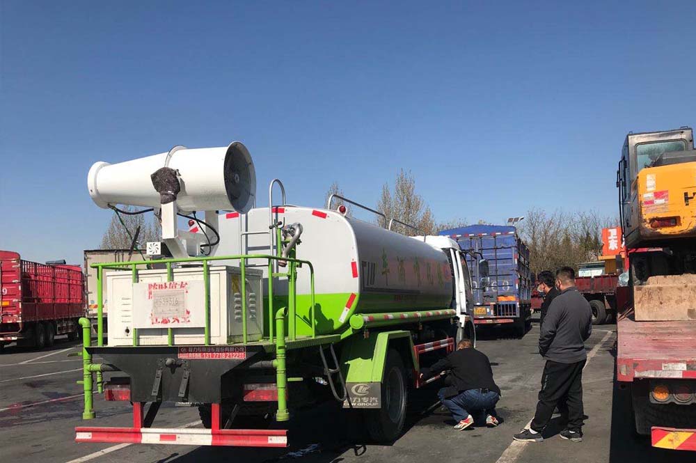 新款國六9方東風福瑞卡灑水霧炮車工作場景實拍圖片