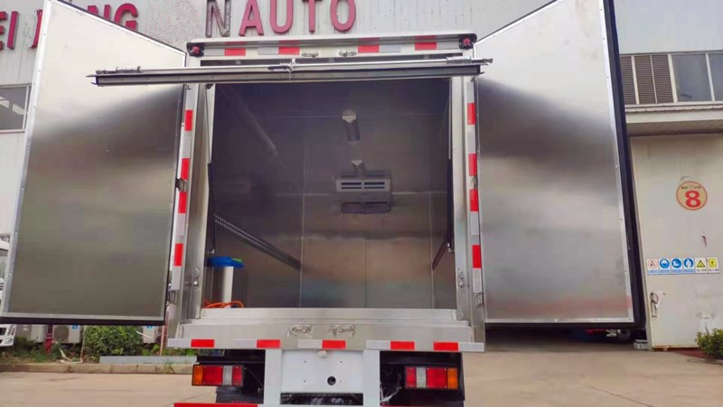 二、上裝配置: 廂體制作工藝及配置:1、廂體采用整體金屬骨架結構,內壁板采用防腐蝕不銹鋼板,車廂底部及轉角圓弧處理。后門為雙層密閉結構,使車廂完全密閉,防止醫療垃圾病菌毒氣的滲漏擴散。2、廂體內配有制冷機組、紫外線滅菌燈、消毒噴頭、垃圾箱定位鎖及拉帶,設有防液體處理箱。紫外線滅菌燈開啟,輻射大量253.7nm紫外線,對微生物有極強的殺傷力,在30-45分鐘內完成消毒滅菌工作。